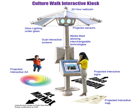 CDG was enlisted by local artist and gallery owner residents to develop an urban plan for a new cultural - technology district that draws on the exisitng high density of similar individuals and organizations in the neighborhood. We have identified the benefits that such a designated district would bring and are completing an analysis of local creative assets and surveying local, state, and federal resources. Our staff is also designing a local cultural walk with an interactive kiosk installation using sensor-projectors and interactive street furniture. Among the other technologies we are suggesting for identity devices are near field radio, QR codes, and interactive digital projections inside empty storefronts.